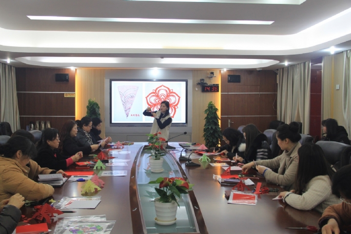 3.邀请非遗传人罗小唯老师来我校传授以女性为主要对象的手工剪纸等实践体验活动。老师主要介绍了剪纸的流派,结合PPT,手把手传授大家剪纸的技巧,受到大家的一致好评,同时也丰富了女性同胞们的业余生活。