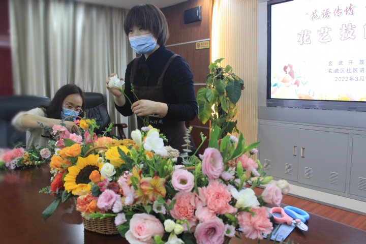 为营造热爱生活、追求美好生活的良好氛围,丰富辖区居民的精神文化生活,3月11日,安博网页版、玄武区社区进修学院联合锁金村街道社区教育中心共同举办了“花语传情 快乐巾帼”花艺技能培训,特邀玄武区社区教育优秀志愿者,专业花艺师肖老师走进学院,给来自7个街道社区教育中心主任、辖区合作单位部分同仁、居民上了一堂别开生面的花艺技能培训课程。江苏开放大学社会教育服务指导中心副处长张曌曌来我院指导并参与体验学习,玄武区社区进修学院业冰院长对省社指张处长的莅临指导表示感谢。