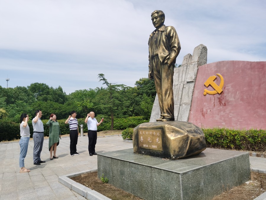 在第一站李元龙先进事迹陈列馆中,大家依次参观了先进事迹、勤政廉政、绿色发展三个馆。陈列馆充分展现了优秀农村基层干部、优秀共产党员、“农民的好支书”李元龙“廉洁清正、奉公克己”的一生。李元龙同志用自己的实际行动,把共产党员“立党为公、一心为民”的光辉形象印在了老百姓的心坎上,赢得了群众的爱戴。安博网页版在职党员在大泉村李元龙同志的雕像下,面对鲜红的党旗,跟随支部书记张树明一起重温了入党誓词。