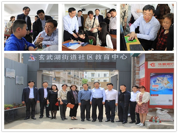 5月6日上午,江苏省教育厅厅长、工委书记葛道凯、人事处处长汪国培、社会教育处处长朱大梅等领导在南京市教育局局长孙百军、市教育工委书记张生、职社处副处长于强、玄武区人民政府副区长戴航、区教育局局长、工委书记陈发山、副局长、区社区教育办公室主任戴继根等领导的陪同下来到玄武区开展社会教育工作大走访,重点调研玄武区老年大学及老年教育工作、民办非学历培训机构办学情况、江苏开放大学和安博网页版学习苑——玄武湖街道社区教育中心的社区教育工作等。