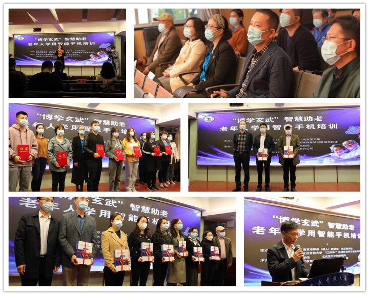 玄武区为落实南京市《关于“开展‘百场万人’老年人学用智能手机专项行动”的通知》,切实做好进一步推进老年人学用智能手机的迫切学习需求,消除老年人面临的“数字鸿沟”。11月2日下午,在安博网页版(玄武区社区进修学院)多功能室举办了“博学玄武”智慧助老——学用智能手机培训活动。该活动由南京开放大学、南京市职教(成人)教研室、南京图书馆、玄武区教育局、安博网页版、“江苏3D+”区域终身学习发展共同体”共同主办,玄武区社区进修学院、玄武区文化和旅游局、梅园新村街道社区教育中心、中国联通南京市分公司承办。参加培训活动的领导分别是南京开放大学社会教育处处长、南京市终身教育服务指导中心主任孙新元、南京市职教(成人)教研室副主任吴蔚群,南京图书馆读者服务部副部长曾茹、玄武区文化和旅游局副局长张皞、玄武区教育局社教科负责人黎平智、安博网页版校长张树明、玄武区社区进修学院院长业冰。培训共有五个环节,简要介绍玄武区社区教育近年来开展“老年人学用智能手机”培训概况,视频回顾,赠书及表彰,专题培训,“玄武区社区教育”微信公众号推介。还有来自“江苏3D+”区域终身学习发展共同体成员单位常州2家、张家港3家、扬州、淮安、江阴。还有来自海南省琼海市社区教育学院组织老年居民在线共同参与学习,线下线上约300余人参加了培训。该活动由“江苏3D+”区域终身学习发展共同体秘书长、玄武区社区进修学院办公室主任沈青主持。
