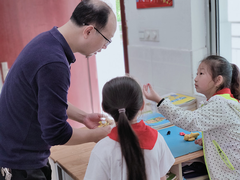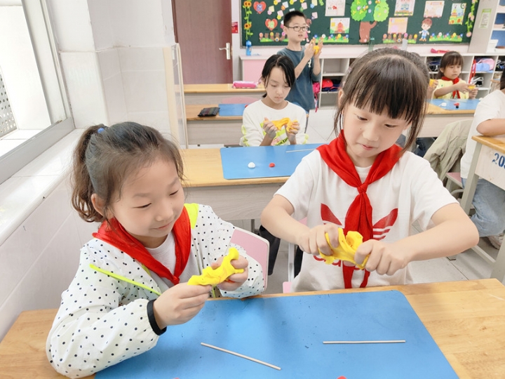 何斌老师的课堂较为灵动,为了方便学生入门,何老师选用超轻黏土作为泥塑的原材料,以虎年民俗入手,教学生捏制福虎。从调色到塑形、雕琢、美化,一系列操作过后,一只卡通福虎从指尖诞生,不仅培养了学生的动手能力,还给予学生美的熏陶,激发了学生对中华传统文化的热爱。