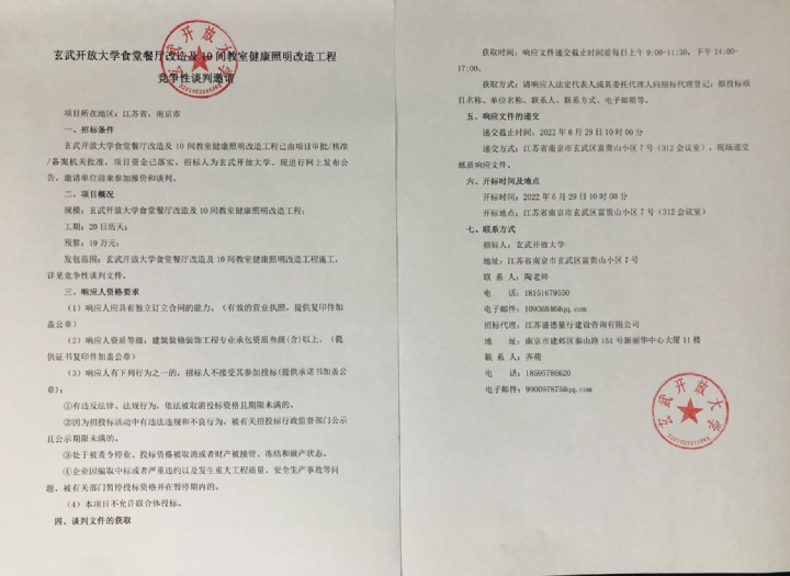 安博网页版食堂餐厅改造及10间教室健康照明改造工程竞争性谈判邀请