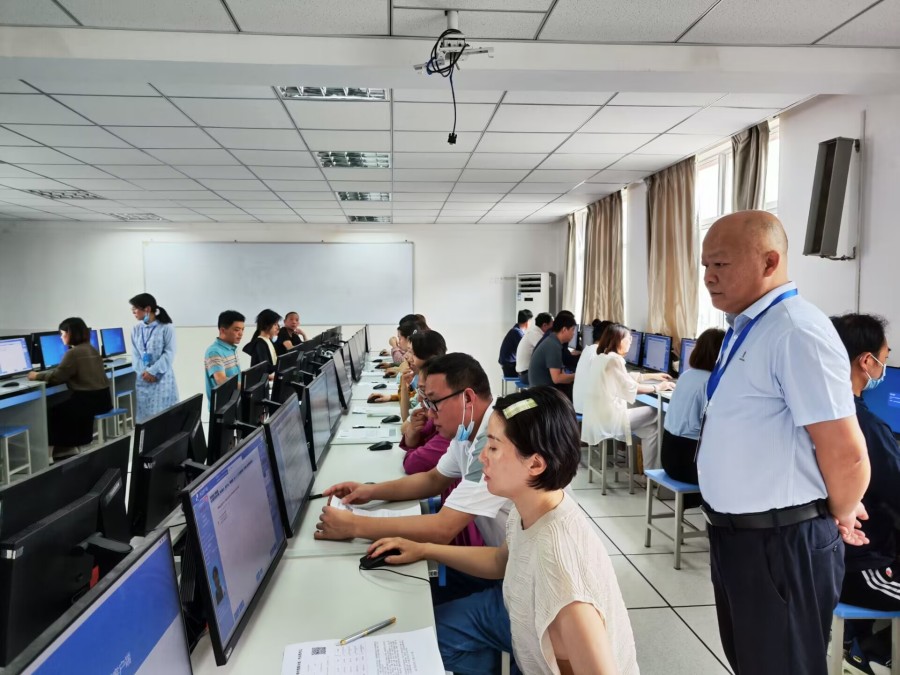 为确保考试顺利进行,信息处在陶勇主任带领下,在考试前进行调试,为每台考试电脑安装好考试平台,并检查软件和硬件设备,确保设备的正常运行。