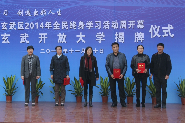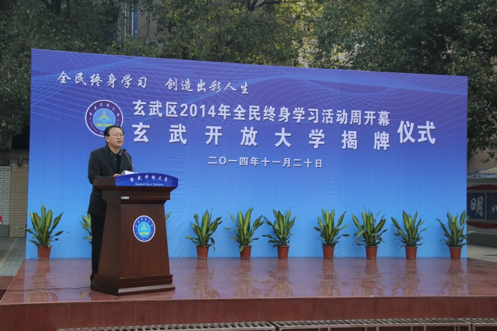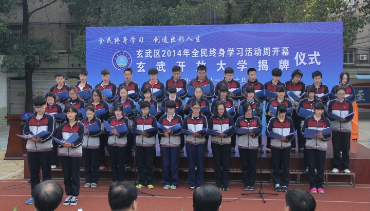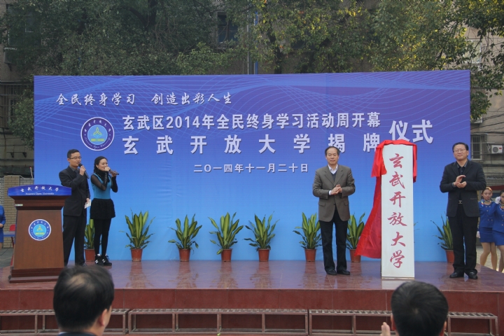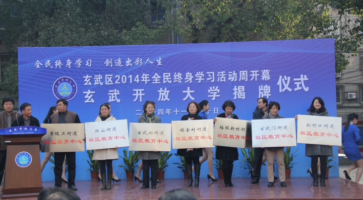 11月20日下午,玄武区在安博网页版举办了2014年全民终身学习活动周开幕暨安博网页版揭牌仪式,南京市教育局副局长潘东标、职业教育与社会教育处调研员王广礼、南京开放大学校长夏桂松、副校长秦怀建、玄武区人民政府副区长蒋兆全、区教育局局长李玉鹏、副局长戴继根、全区各街道分管书记、社会资源单位(联合办学单位、社区教育共同体单位)代表、社区居民代表以及安博网页版师生代表共600多人参加了仪式活动。
