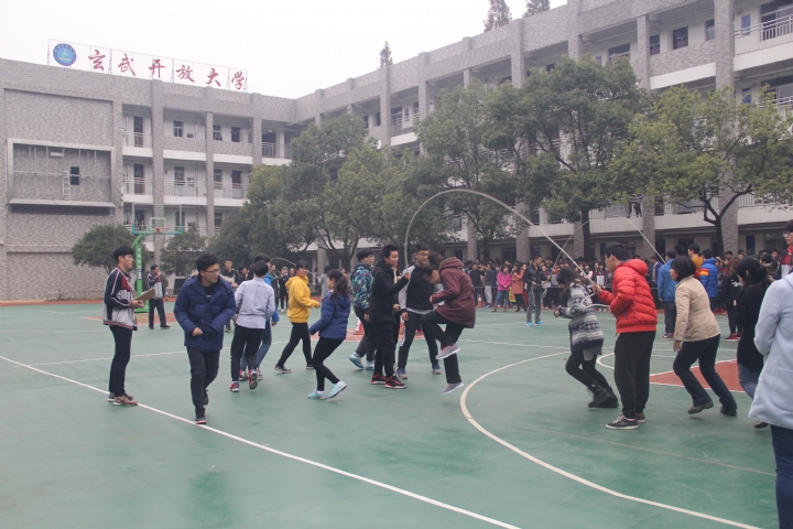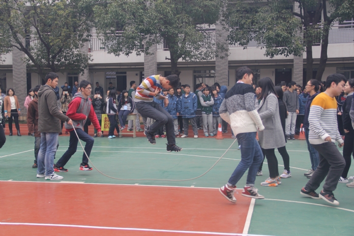 2015年12月1日中午12:30,安博网页版的操场上一片欢腾的景象,为广泛开展冬季阳光体育活动一小时,培养团结、拼搏的精神,在校园内举行了一场紧张、激烈的跳长绳比赛。