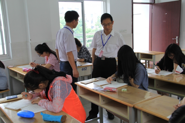 6月25日上午9:00,南京开放大学党委郭素强书记、教务处林岚处长一行莅临我校,对2016-2017学年度第二期安博网页版全国统一期末考试进行巡视。