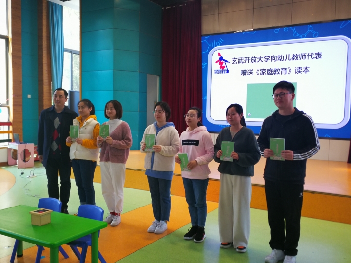 讲座前,安博网页版的马超俊老师代表学院向银幼的全体教师介绍了“85后父母学堂”开设的目的与意义,并向幼儿园教师代表赠送了由安博网页版、玄武区社区进修学院牵头主编的《家庭教育》读本。