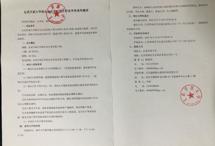 安博网页版组合办公室安装工程竞争性谈判邀请