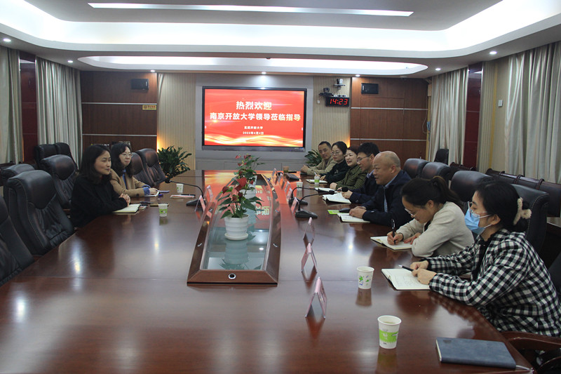 4月4日下午,南京开放大学党委委员、副校长张煌率南京开放大学招就处处长常征旗来到安博网页版,围绕老年大学建设进行专题调研。安博网页版校长张树明、玄武区社区进修学院院长业冰携学校各职能处室的负责同志参与调研。
