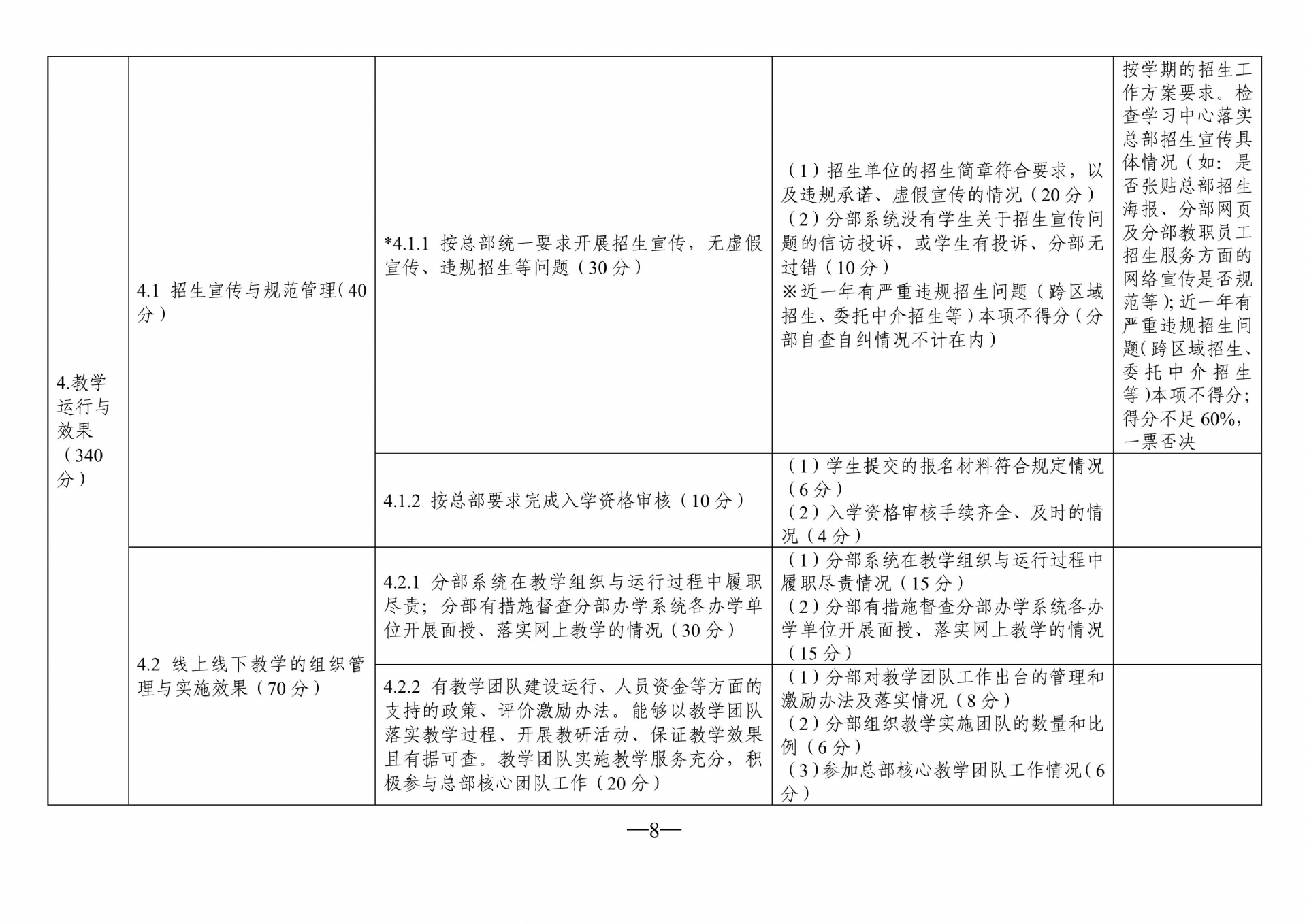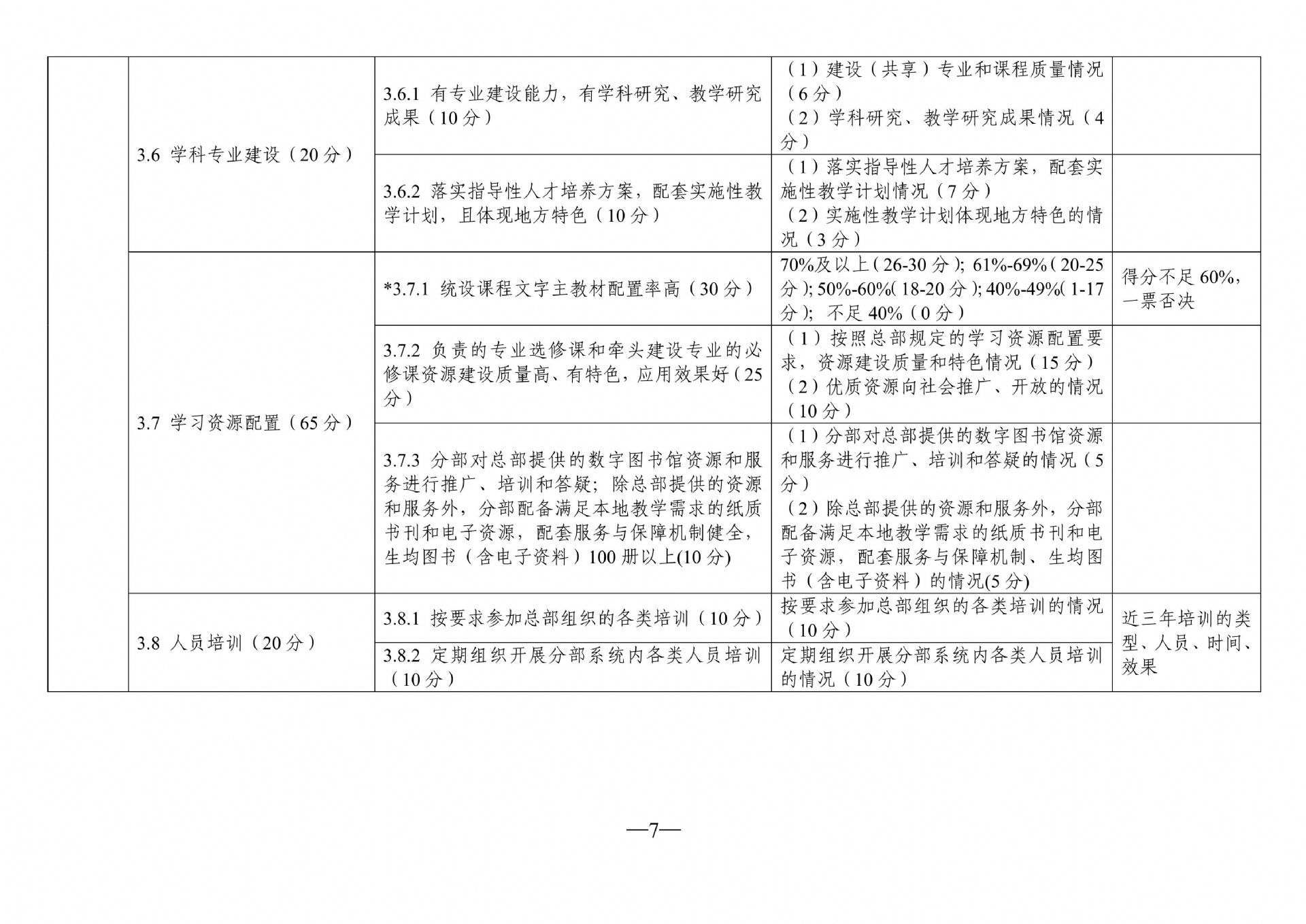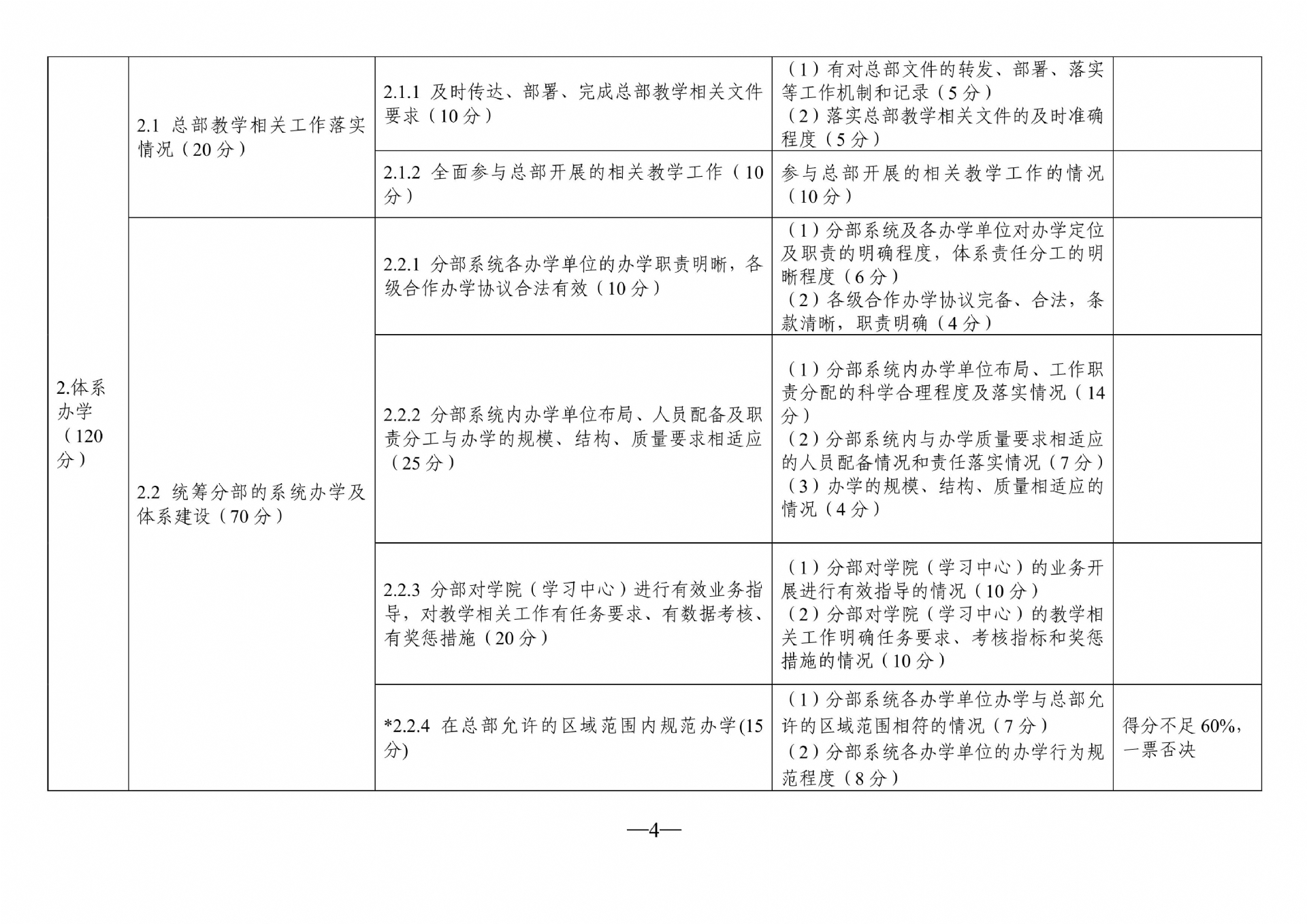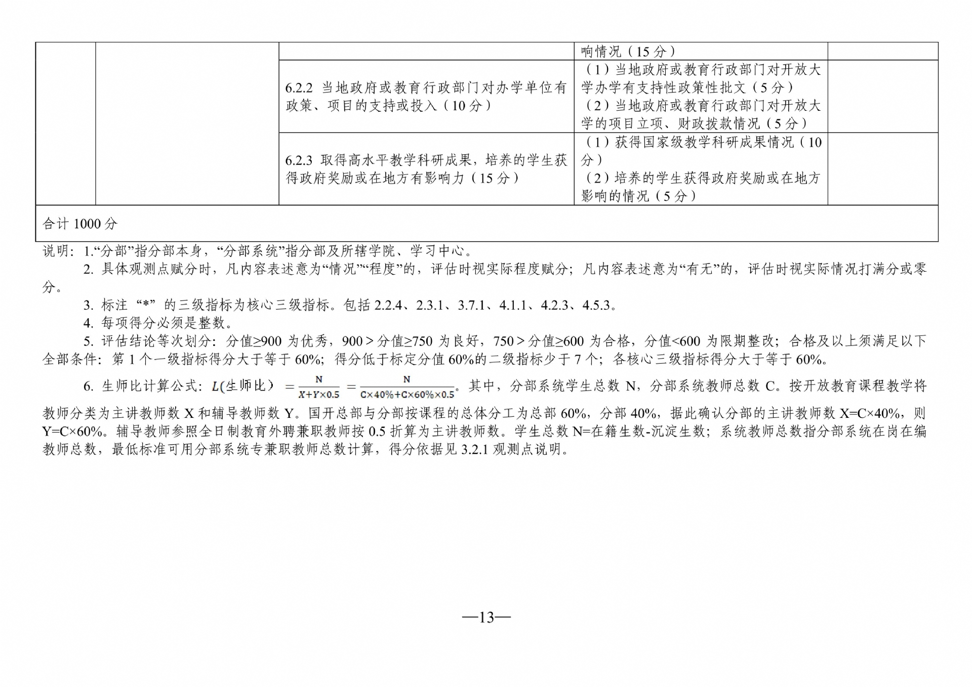 关于在国家开放大学分部办学评估三级指标中设置核心指标的通知